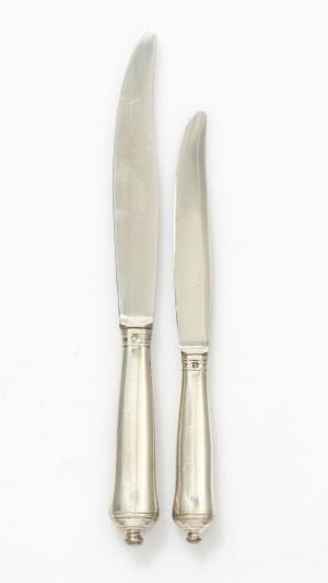 3208. 12 couteaux à fromage à lame en argent et 6 fourchettes à huître...
