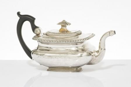 3252. Théière néoclassique, couronne de feuilles d'eau et feuilles de...