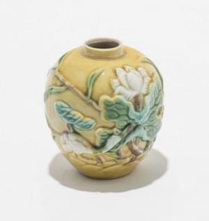 3290. Petit pot à décor floral et d'un oiseau