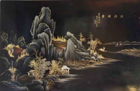 Laque à décor d'un paysage animé, signé, Asie du Sud-Est, XXe s,...