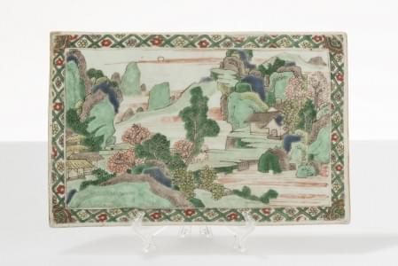 Porcelaine émaillée polychrome à décor de paysage architecturé,...