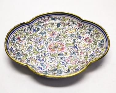 Cuivre émaillé à décor vermiculé et de fleurs sur fond blanc, Ch...