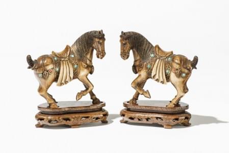3343. Paire de chevaux harnachés