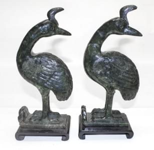 Bronze à patine noire à décor de volatiles, anses en phoenix, Ch...