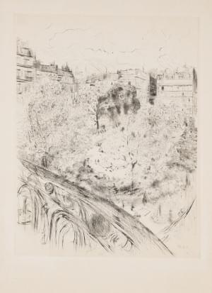 Le square vintimille, pointe sèche, signée dans la planche, 33x2...