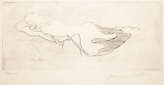 Femme couchée, gravure, signée et numérotée 8/12, 12x26 cm