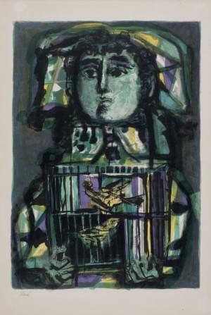 L'enfant à la cage, lithographie en couleurs, signée, 1950, 48x3...