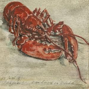Homard, gouache sur carton, signée et datée 1972, 13x14 cm