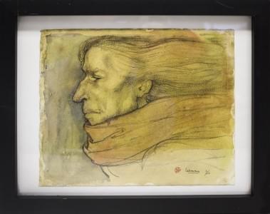 Portrait d'homme à l'écharpe, aquarelle et mine de plomb, 20x23...