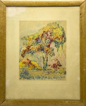 Jardin botanique, gouache et aquarelle sur papier, signé, 16x23...