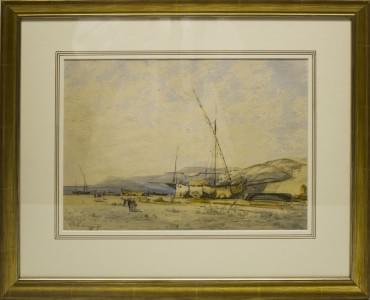 Bâteau près du rivage, aquarelle sur papier monogrammée H.T, sit...