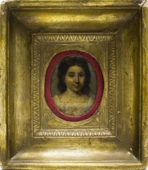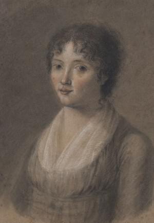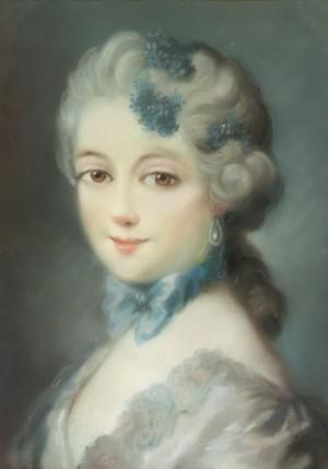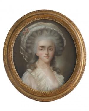 Portrait de dame à la perruque grise, pastel sur papier, ovale,...