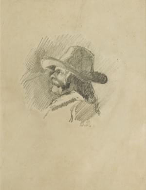 Portrait d'homme, mine de plomb sur papier monogrammée, 21,5x11,...
