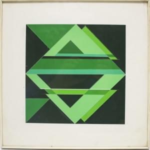 Composition abstraite en vert, collage, signé et daté 1973, 29x2...