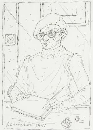 Autoportrait, plume sur papier signée et datée 91, 30x21 cm