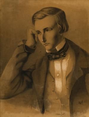 Jeune homme mélancolique, fusain et gouache, 60x46 cm