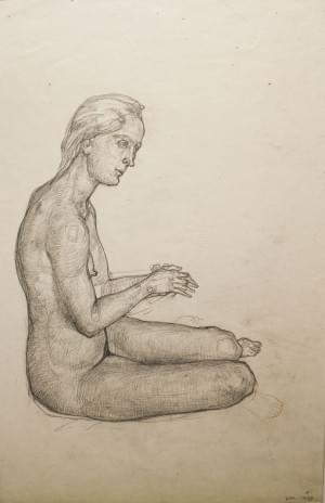 Nu féminin assis, mine de plomb sur papier, monogrammé et daté 1...