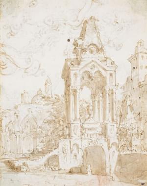 Caprice architectural, encre et lavis d'encre, 38x26 cm
