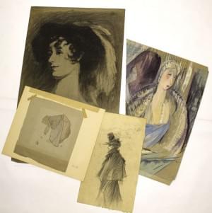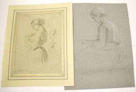 Une étude de nu et une femme drapée, fusain sur papier, signés e...
