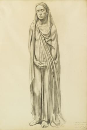 Femme drapée, mine de plomb sur papier, signée, 66x46 cm