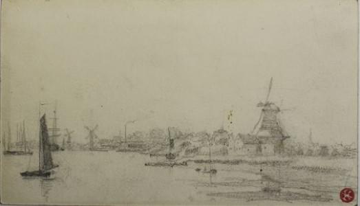 Paysages au bord d'un fleuve, ensemble de 3 dessins à l'encre, l...