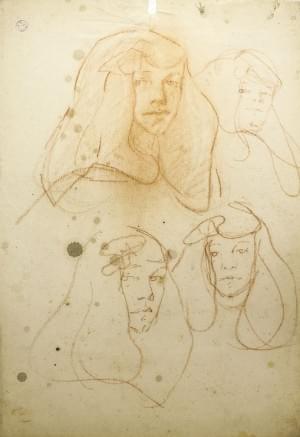 Portraits, étude pour la revue artistique, aquarelle, encre, fus...
