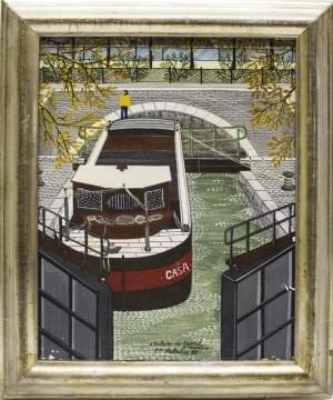 L'écluse du canal Saint-Martin, huile sur toile signée et datée...
