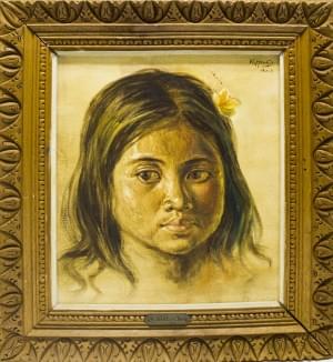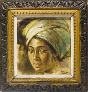 Portrait d'une jeune indonésienne au turban, huile sur toile, si...