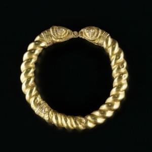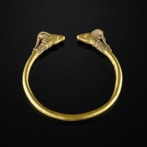 1011. Bracelet torque à décor de têtes d'ibex affrontées de style moye...