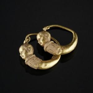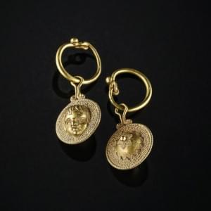 1016. Paire de créoles à motif de visage d'enfant de style hellénistiq...
