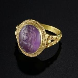 1019. Bague sertie d'une intaille sur améthyste de style romain