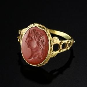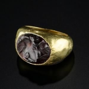 1020. Bague sertie d'une intaille sur grenat de style romain