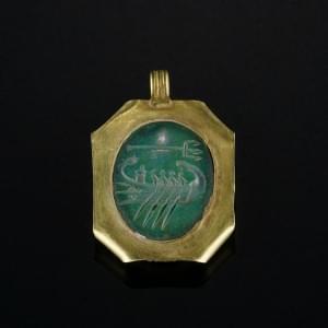 1025. Pendentif serti d'une intaille sur jaspe sanguin de style romain