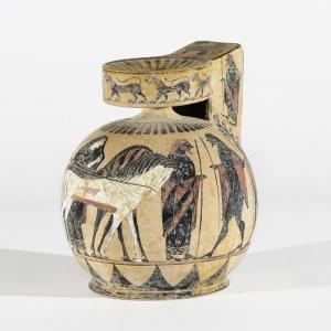 Terre cuite à engobe polychrome, H 17, D 11 cm. Provenance: Coll...