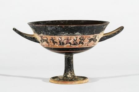 Panse décorée d'une frise de personnages, terre cuite, H 16,5 cm