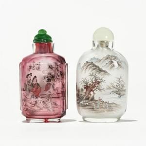 35. Deux flacons à priser peints à l'intérieur, Chine, dynastie Qing...