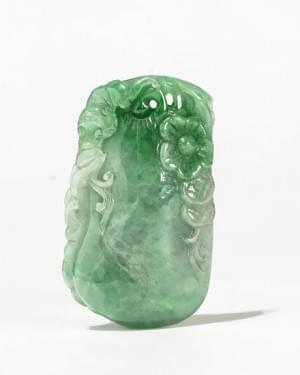 Orné de deux têtes de lion et fleurs de prunier, 7x4,5 cm