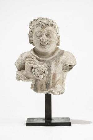 Tenant une grappe dans la main droite, calcaire sculpté, traces...