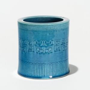 Porcelaine à glaçure turquoise, marque en creux apocryphe de Kan...