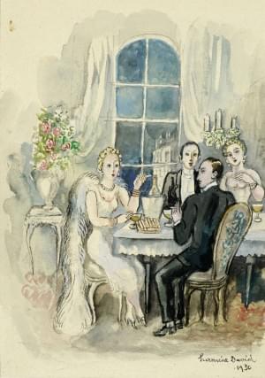Les mariés, aquarelle sur papier, signée et datée 1930 23x16 cm