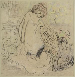 Silhouette de femme, pastel et encre sur papier, signature illis...