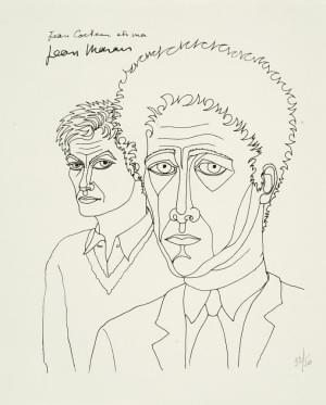 Jean Cocteau et moi, lithographie en noir et blanc, signée et nu...