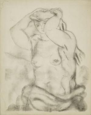 Femme nue se coiffant, lithographie, signée, 50x40,5 cm