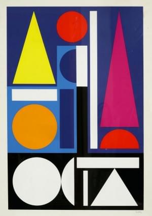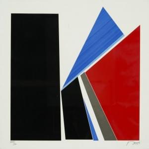 Composition géométrique au triangle bleu, lithographie en couleu...