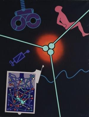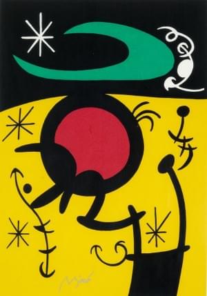Personnage sur fond noir et bleu, sérigraphie, estampillée 'Maeg...