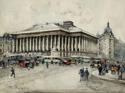 La bourse, encre et aquarelle, signée et datée 1929, 50x66 cm