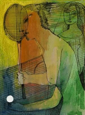 Balle de set, aquarelle sur papier, signée et datée 1980, 21x17...