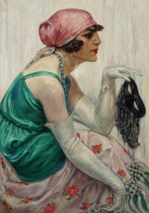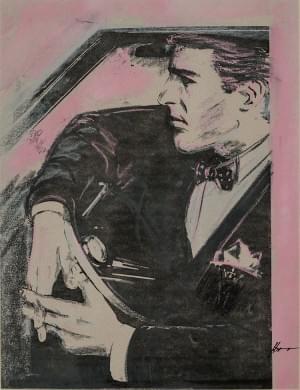 Elégant au volant, encre et gouache sur papier, signée, vers 196...