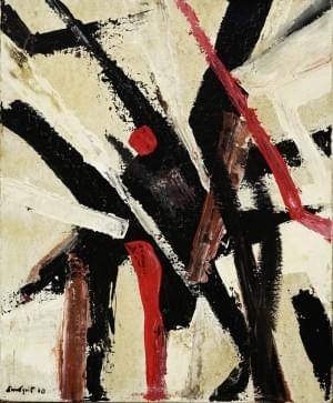 Composition abstraite, huile sur toile, signée et datée 1958 au...