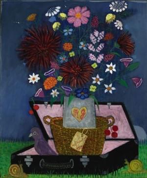 Jeune fille et jouets, aquarelle et pastel sur papier, 117x73 cm